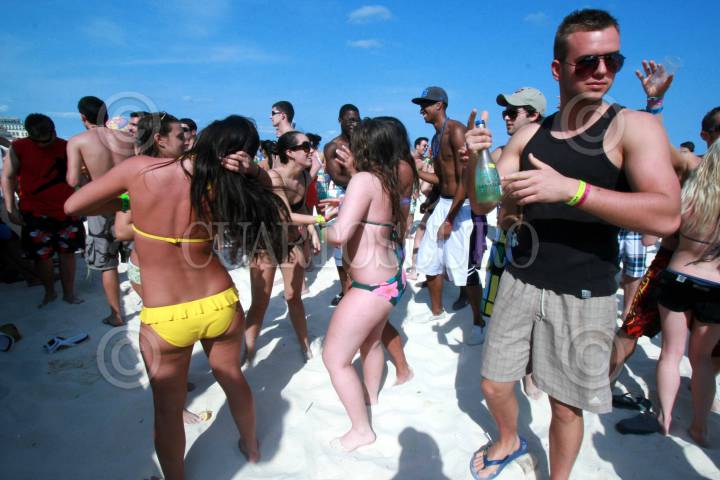 CANCÚN, QUINTANA ROO, 23 MARZO2010.- Decenas de llamados Spring breakers abarrotan las playas donde pasan sus vacaciones de semana santa. FOTO: AMARANTA PRIETO/CUARTOSCURO.COM