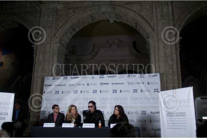 MÉXICO, D.F., 02NOVIEMBRE2011.- El polifacético artista, Marilyn Manson, presentó en conferencia de prensa, "Path of Misery" que se exhibira del 4 de Noviembre 2011 al 5 de Febrero de 2012, la muestra reune 30 acuarelas por primera vez. FOTO: FRANCISCO RODRÍGUEZ/CUARTOSCURO.COM