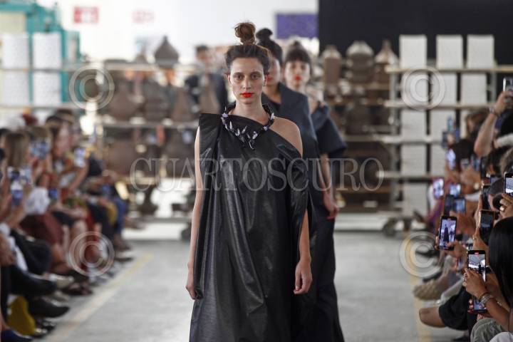 Modelos desfilan y muestran la colección de Toronero, esto en la sede de Cerámica Suro, durante el segundo día de actividades del Mercedes-Benz Fashion Week jalisco.