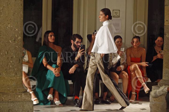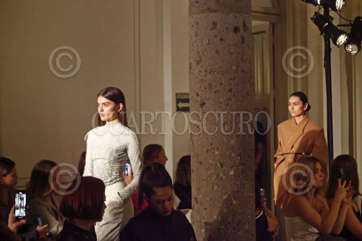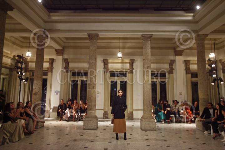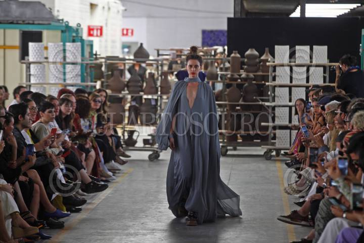 Modelos desfilan y muestran la colección de las diseñadoras Julia y Renata, esto en la sede de Cerámica Suro, durante el segundo día de actividades del Mercedes-Benz Fashion Week jalisco.