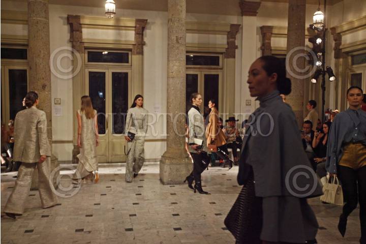 Modelos desfilan y muestran la colección del diseñador Alfredo Martinez, esto en la sede de Palcco, durante el tercer día de actividades del Mercedes-Benz Fashion Week jalisco.