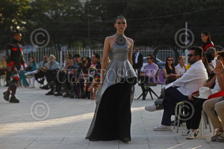 Modelos desfilan y muestran la colección No Name, esto en la sede de Palcco, durante el tercer día de actividades del Mercedes-Benz Fashion Week jalisco.