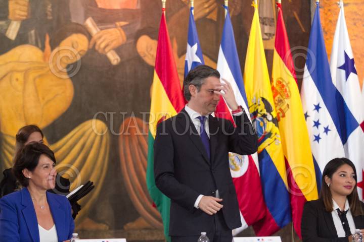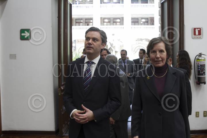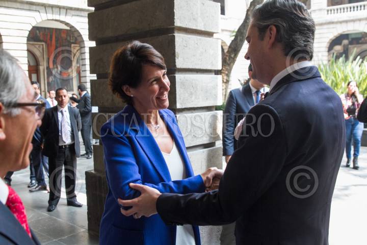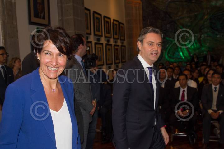 CIUDAD DE MÉXICO, 27JULIO2017.- Anne Grillo, embajadora de Francia, y Aurelio Nuño Mayer, secretario de Educación Pública, durante la entrega de reconocimientos a becarios de los programas Mexfitec y Mexprotec 2017-2018, en la sede de la SEP. FOTO: MOISÉS PABLO /CUARTOSCURO.COM