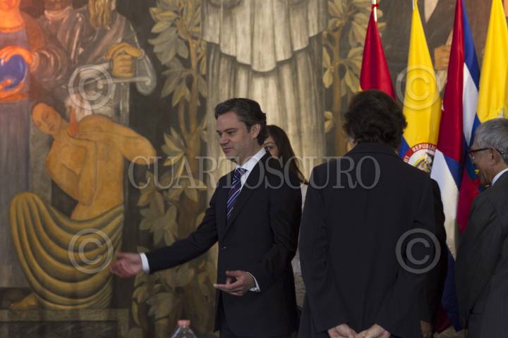 CIUDAD DE MÉXICO, 04AGOSTO2016.- Aurelio Nuño Mayer, secretario de Educación Pública, durante la ceremonia de despedida de becarios MEXFITEC y MEXPROTEC 2016-2017, en el salón Hispanoamericano de la SEP. FOTO: MOISÉS PABLO /CUARTOSCURO.COM