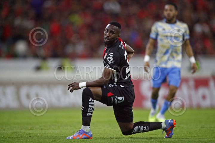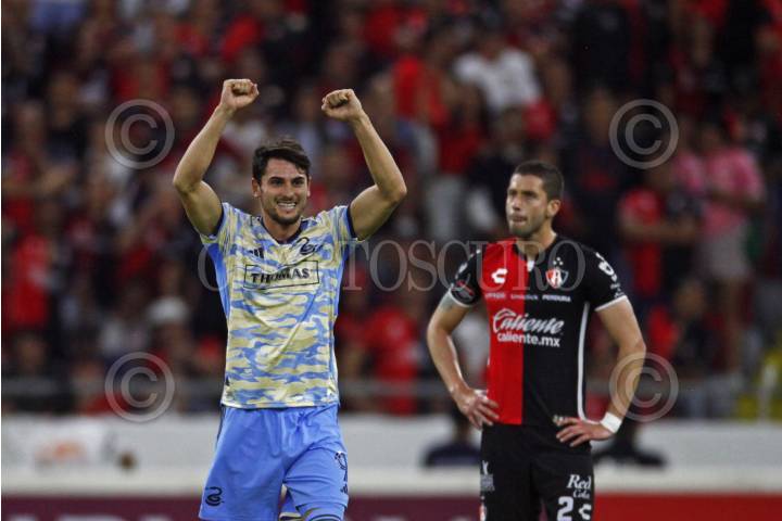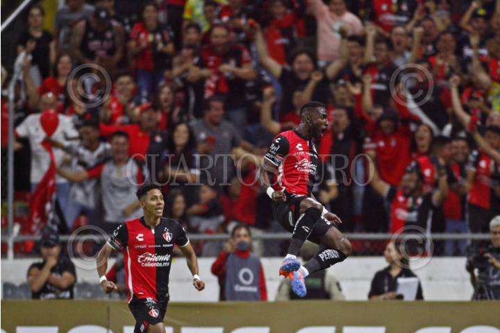 Julián Quiñonez, jugador de Atlas celebra su anotación, esto en partido correspondiente a los cuartos de final de la Concachampions.