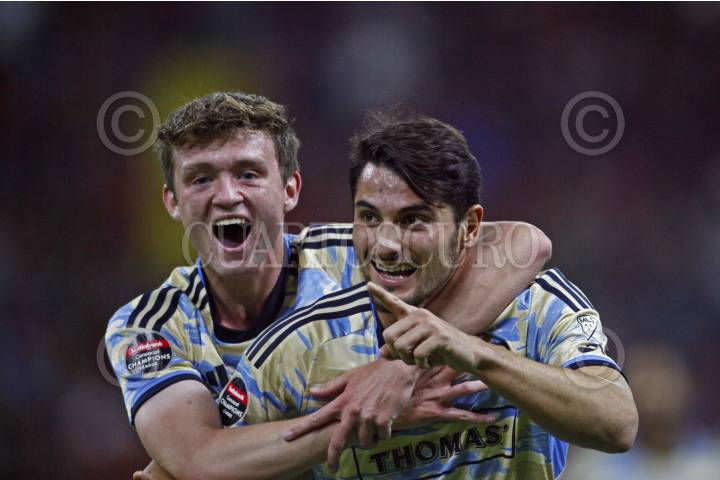 Julián Carranza jugador de Philadelphia celebra su segunda anotación, esto en partido correspondiente a los cuartos de final de la Concachampions.