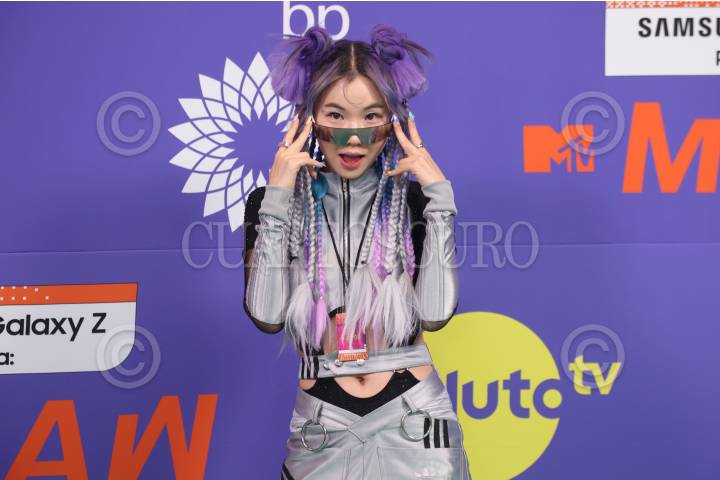 CIUDAD DE MÉXICO, 11JULIO2024. Chingu Amiga durante la alfombra verde de la entrega de premios MTV MIAW 2024, en el Pepsi Center. FOTO: EDGAR NEGRETE LIRA/CUARTOSCURO.COM