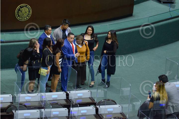 Emilio Manzanilla, diputado del PT, se toma una fotografía con familiares y amigos, previo a la sesión ordinaria de la Cámara de Diputados en donde se prevé de por terminado el periodo de sesiones durante transcurso de la noche.