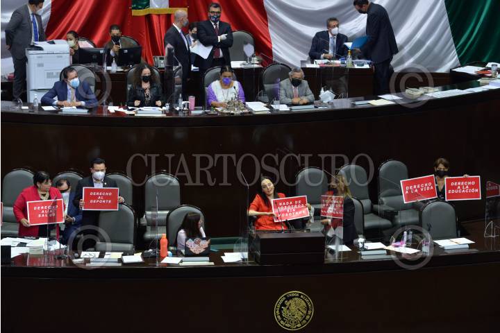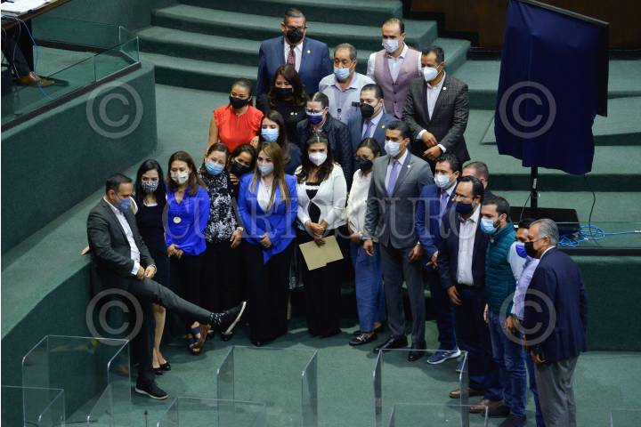 Integrantes del grupo parlamentario del PAN se toman una fotografía durante la sesión ordinaria de la Cámara de Diputados, en donde se prevé de por terminado el periodo de sesiones durante transcurso de la noche.