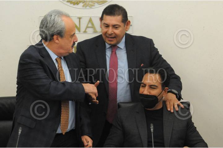 Alejandro Armenta, presidente de la Mesa Directiva del Senado, sale de la reunión con el secretario de Gobernación, Adán Augusto López.