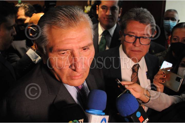 Adán Augusto López, secretario de Gobernación, atiende a los medios de comunicación después de sostener una reunión con legisladores de Morena.
