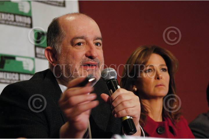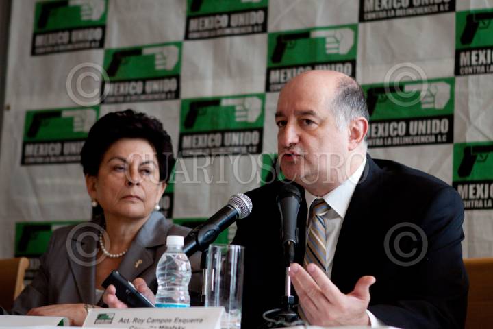 MÉXICO D.F., 17JUNIO2009.-Roy Campos Director de Consulta Mitofsky, acompañado de Ana Franco Wattenem, Presidenta Nacional de México Unido Contra la Delincuencia, durante la conferencia de prensa de esta mañana, donde dieron a conocer que cerca del 73% de mexicanos percibe "igual o peor" la inseguridad que hace un año, también la presidente de esta organización, denunció que solo han sido resueltos satisfactoriamente 10 de los 44 puntos del Acuerdo Nacional por la Seguridad, la Justicia y la Legalidad que tenían que estar cumplidos al día de hoy, este acuerdo, que fue firmado el 21 de agosto del año pasado, consta de 74 compromisos concretos que tienen asignados plazos definidos para su cumplimiento. FOTO: GUILLERMO PEREA/CUARTOSCURO