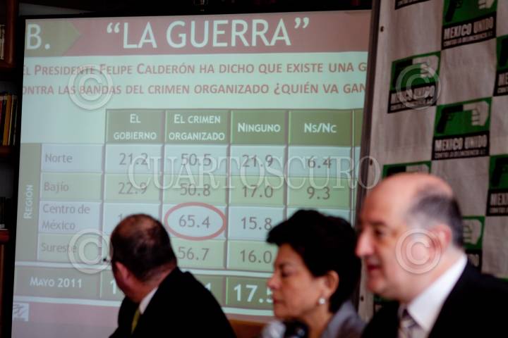 MÉXICO, D.F., 01JUNIO2011.- Roy Campos Esquerra, director de Consulta Mitofsky, presentó la última encuesta nacional sobre la percepción de seguridad ciudadana en México realizada por Consulta Mitofsky de manera conjunta con México Unido contra la Delincuencia, A.C., la cual señala que un año aumento de 30 a 58 por ciento el número de personas que consideran que el crimen organizado va ganando la guerra contra la inseguridad emprendida por el gobierno. FOTO: MOISÉS PABLO/CUARTOSCURO.COM