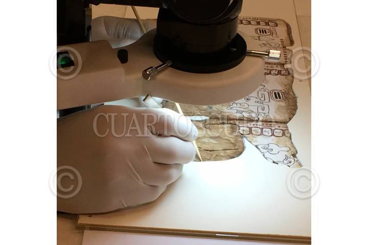 CIUDAD DE MÉXICO, 30AGOSTO2018.- Se llevará a cabo la exposición "El Códice Maya de México" en el marco de la vigésima novena Feria Internacional del libro de Antropología e Historia, qeu se efectuará entre el 27 de septiembre y 7 de octubre, dicho documento, declarado auténtico, es el manuscrito americano más antiguo que existe, el cual será incorporado al progrmama Memoria del Mundo, de la UNESCO; en la imágen, identificación de colores y pigmentos del códice. FOTO: ALBA BARRIOS /INAH /CUARTOSCURO.COM