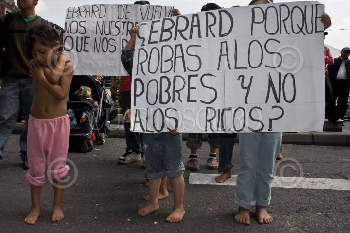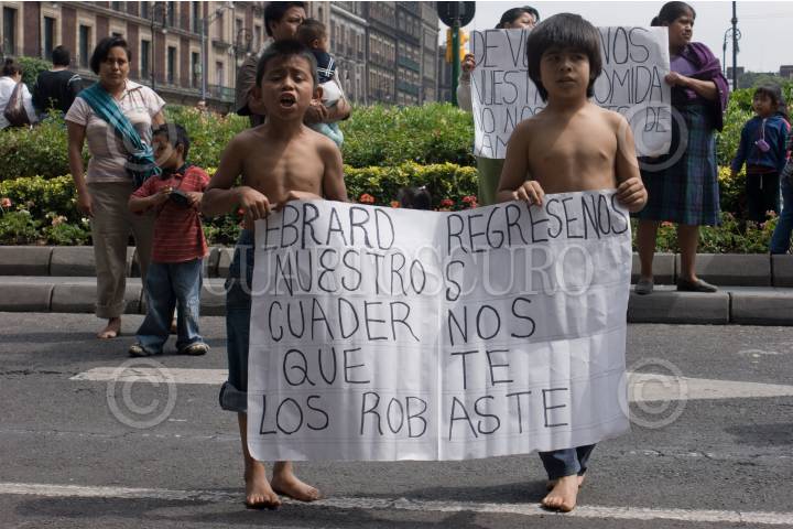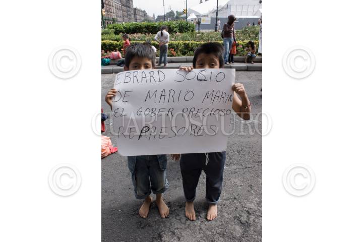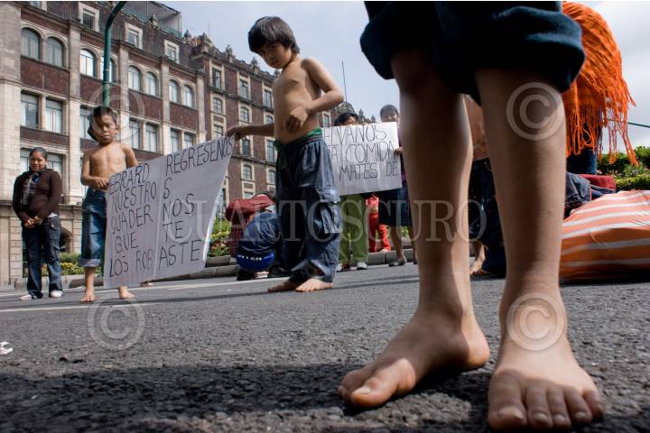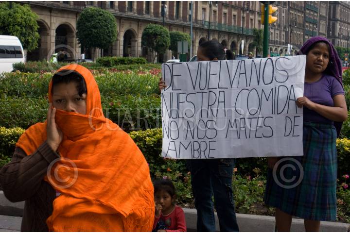 MÉXICO, D.F., 22JUNIO2009.- Campesinos de la Sierra Madre Oriental del pueblo de Huaxcaleca y sus comunidades en el municipio de Chichiquila Puebla, se manifestaron a las afueras del Antiguo Palacio del Ayuntamiento en protesta por haber sido desalojados por granaderos de la policía capitalina de su plantón que mantenían a las afueres de de las oficinas de la representación de Puebla en Avenida chapultepec 494 denunciando al gobernador Mario Marin, estos campesinos pidieron al gobierno federal no meterse en los asuntos que no son de su entidad y del mismo modo pidieron que regresen las pertenencias que fueron hurtadas durante el desalojo según informaron los manifestantes. FOTO: RICARDO CASTELAN/CUARTOSCURO.COM