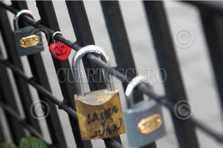 MÉXICO, D.F, 12FEBRERO2011.- El Museo del Objeto del Objeto (MODO), realiza el día de hoy una expresión colectiva de amor donde las parejas pueden colgar un candado con las iniciales de sus nombres y depositar la llave en un antiguo buzón de hierro forjado, el cual forma parte del acervo de la colección del MODO. Ésto se realiza con motivo del Día del Amor y la Amistad el próximo lunes 14 de febrero. FOTO: MISAEL VALTIERRA/CUARTOSCURO.COM