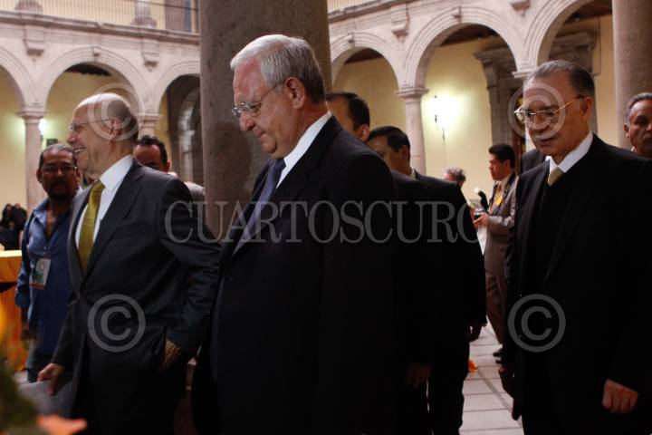 MEXICO,D.F., 06JUNIO2011.- José Woldenberg Karakowsky, Jorge Carpizo McGregor, ex rector de la UNAM, y Juan N. Silva Meza, presidente de la Suprema Corte de Justicia de la Nación, inauguraron la Conferencia Internacional sobre Seguridad y Justicia en Democracia "Hacia una política de Estado en los albores del Tercer Milenio" en la Antigua Escuela de Medicina. FOTO: IVAN STEPHENS/CUARTOSCURO.COM
