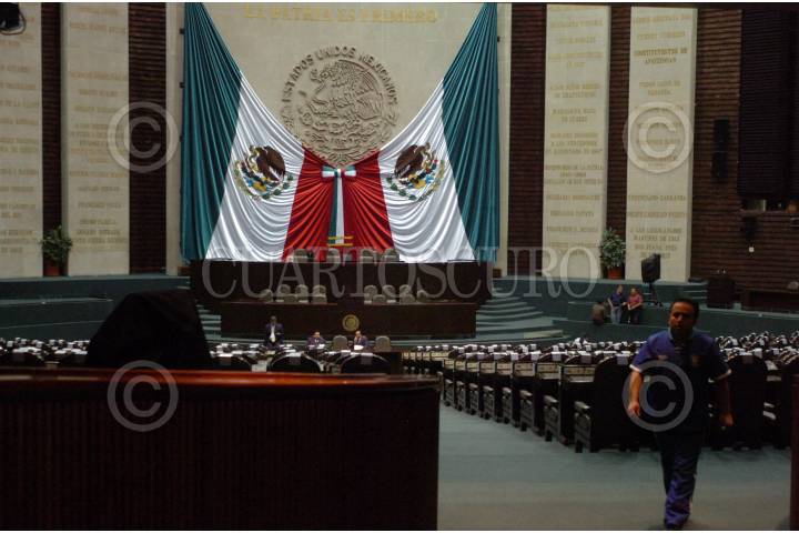 MÉXICO, D.F., 28AGOSTO2009.- El Salón de plenos de la Cámara de Diputados se custodiada por elementos de seguridad mientras se realizan los trabajo de limpieza. FOTO: GUILLERMO PEREA /CUARTOSCURO.COM