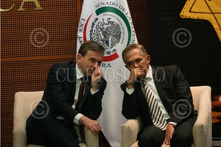 Maciej Ziętara, embajador de Polonia en México, y el senador Miguel Ángel Mancera, conversaron durante un acto de conmemoración en memoria de las víctimas del Holocausto y en recuerdo de Don Gilberto Bosques Saldívar