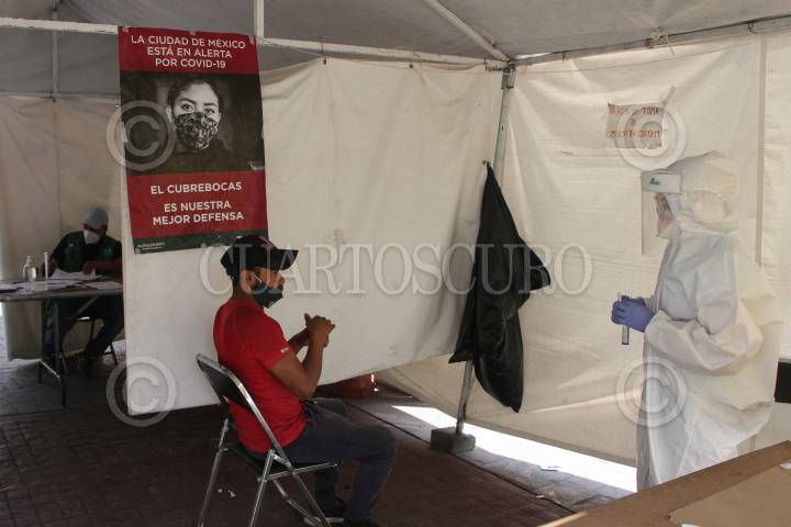 Capitalinos durante su espera para realizarse la prueba de detección de COVID-19.