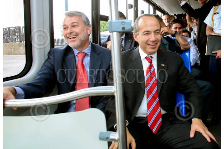 GUADALAJARA, JALISCO, 10MARZO2009.- Emilio González Márquez, gobernador de Jalisco y el presidente de México, Felipe Calderon Hinojosa, durante la Inauguración del Macrobus FOTO: ALFREDO GUERRERO/CUARTOSCURO.COM
