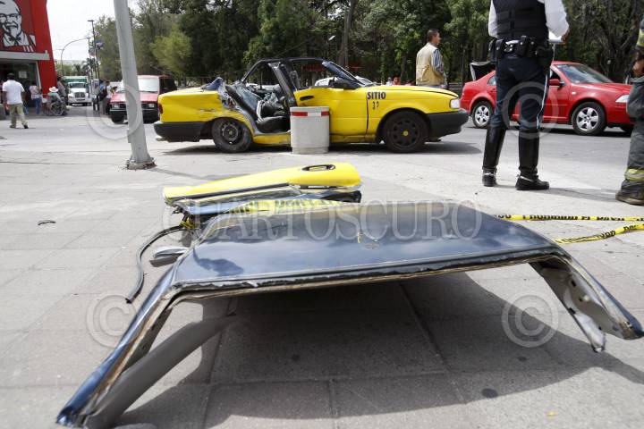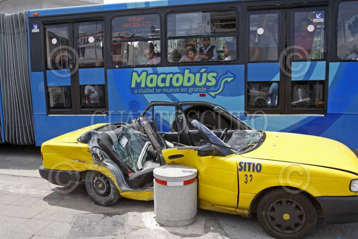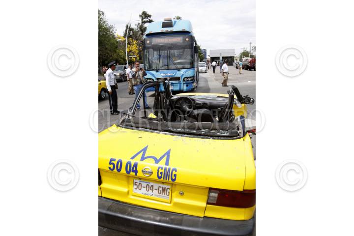 GUADALAJARA, JALISCO, 14ABRIL2016.- Esta tarde dos vehículos del transporté publico tapatío Macrobús y taxi, sufrieron un accidente vial en los cruces de la Calzada Independencia y Federación en pleno centro de la ciudad, al lugar arribaron los servicios de emergencia que se hicieron cargo del siniestro en el cual solo hubo personas con lesiones leves. FOTO : FERNANDO CARRANZA GARCIA / CUARTOSCURO.COM