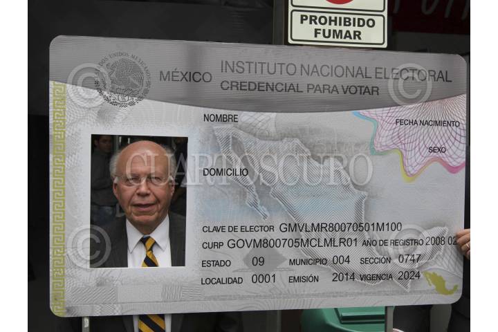 MÉXICO, D.F., 05JUNIO2015.- El rector de la UNAM José Narro Robles se toma la foto en una reproducción de una credencial de elector durante un recorrido por la macrosala del INE. FOTO: INE /CUARTOSCURO.COM