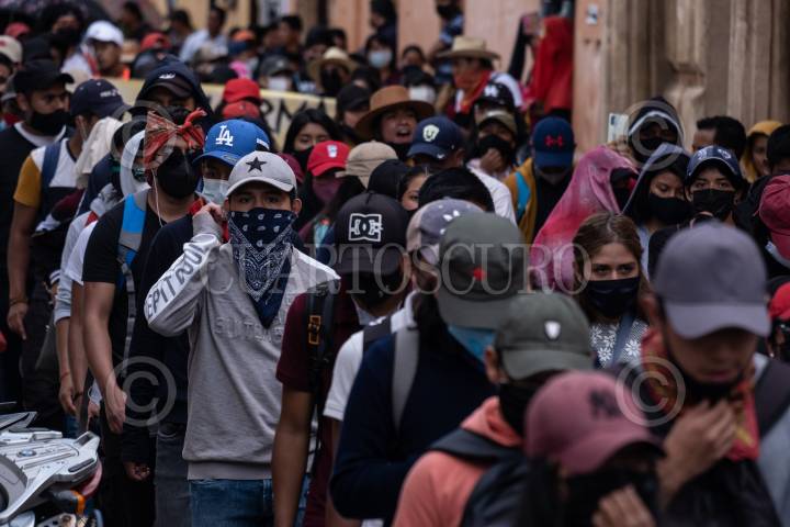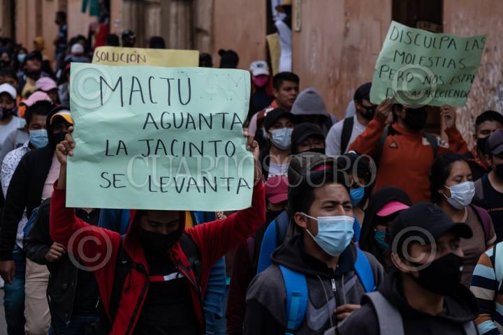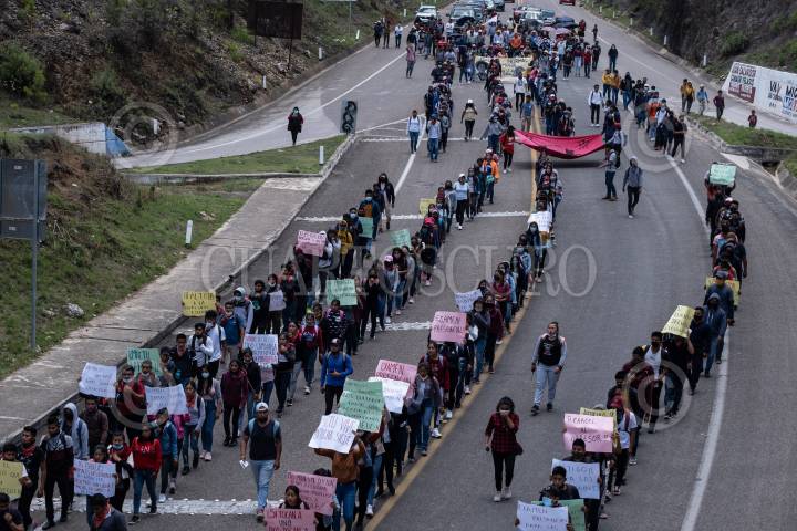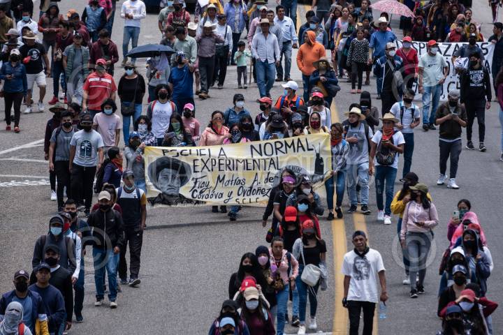 Estudiantes normalistas marchan para exigir la liberación de los 95 estudiantes detenidos el día de ayer.