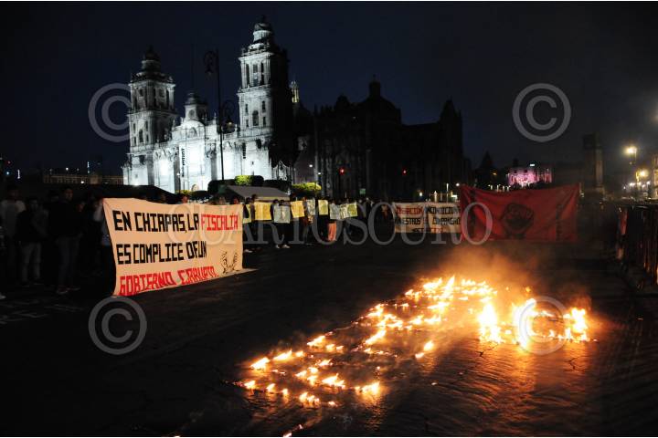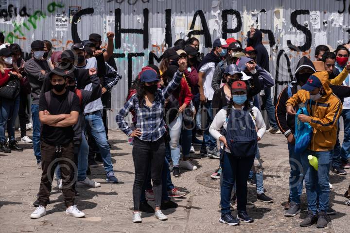 Normalistas de Mactumatzá se manifestaron esta mañana frente a Palacio Nacional.