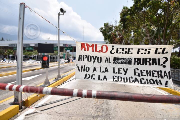 Padres de los 43 normalistas de Ayotzinapa y estudiantes de la Normal Rural "Raúl Isidro Burgos" tomaron la autopista del Sol en exigencia de la liberación de los compañeros detenidos en Mactumatzá, Chiapas.