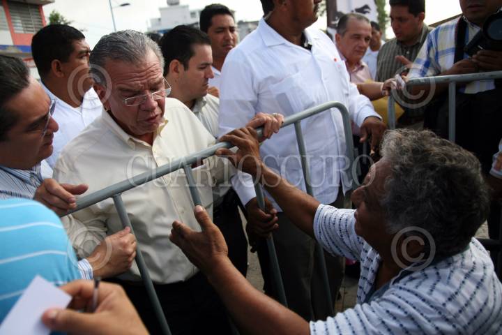 VILLAHERMOSA, TABASCO, 04JUNIO2009.- Andrés Granier Melo, gobernador atendiendo una petición de un minusválido, minutos antes de rendir honores en el 40 aniversario luctuoso del fallecido Carlos Alberto Madrazo Becerra, el cual tuvo lugar en el malecón que lleva el mismo nombre. FOTO: MARCO POLO GUZMÁN HERNÁNDEZ/CUARTOSCURO.COM