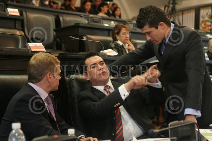 MÉXICO, D.F., 01FEBRERO2011.- Los senadores Arturo Escobar, PVEM, Rafael Alejandro Moreno Cárdenas (PRI) y Federico Madrazo Rojas, hijo del político tabasqueño Roberto Madrazo, durante la sesión en la Cámara de Alta. FOTO: MOISÉS PABLO/CUARTOSCURO.COM