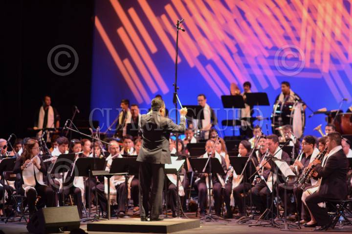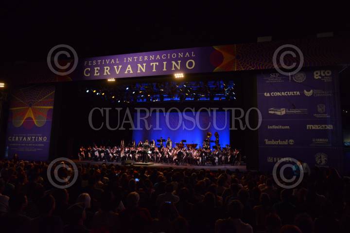 GUANAJUATO, GUANAJUATO, 12OCTUBRE2015.- En la Explanada de la Alhóndiga, se presentó el Encuentro Banda de Tlayacapan Brígido Santamaría y Bandas de Viento de Guanajuato, como parte de program de música del mundo durante la edición XLIII del Festival Internacional Cervantino 201. FOTO: ADOLFO VLADIMIR /CUARTOSCURO.COM
