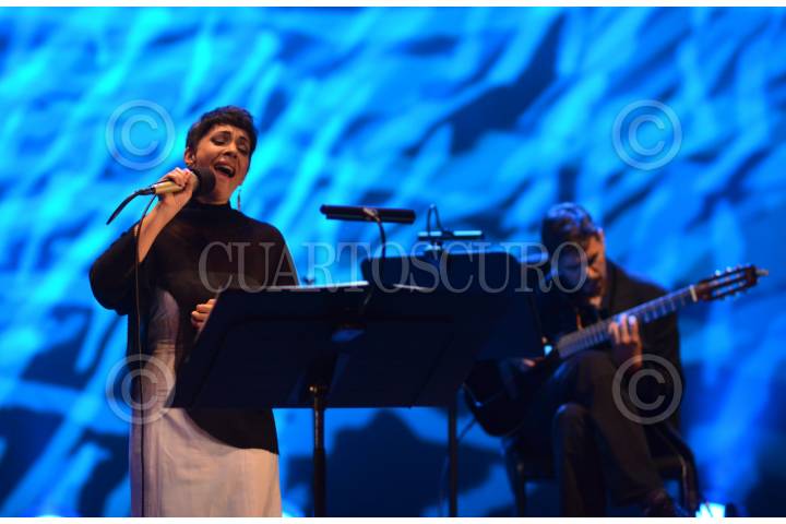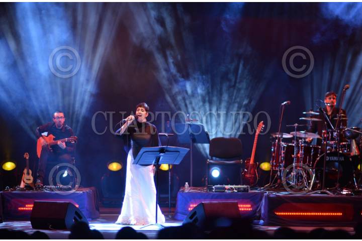 GUANAJUATO, GUANAJUATO, 13OCTUBRE2015.- En la Explanada de la Alhóndiga, Teresa Salgueiro, ex vocalista de Madredeus, durante su presentación de su más reciente producción discográfica "La golondrina y el horizonte", en donde explora la música mexicana y latinoamericana, como parte de la edición XLIII del Festival Internacional Cervantino 2015. FOTO: ADOLFO VLADIMIR /CUARTOSCURO.COM