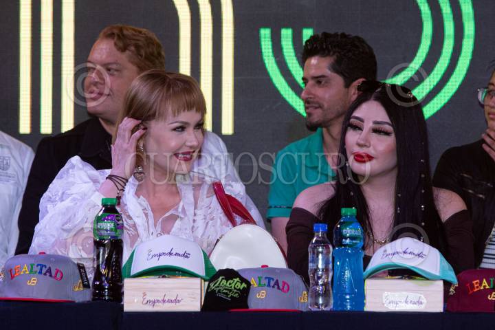 Gabriela Spanic y Bellakath durante la rueda de prensa con uno de los comités de la Marcha Gay Pride, que se llevará a cabo el próximo sábado 24 de junio.