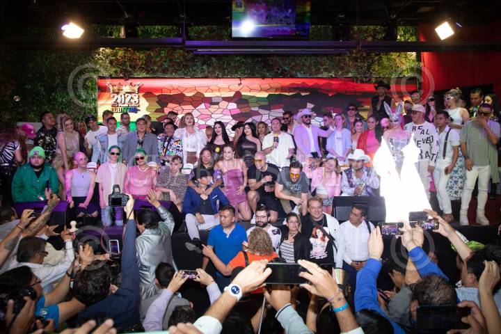 Parte del elenco que participará en la parte musical, durante la rueda de prensa con uno de los comités de la Marcha Gay Pride, que se llevará a cabo el próximo sábado 24 de junio.