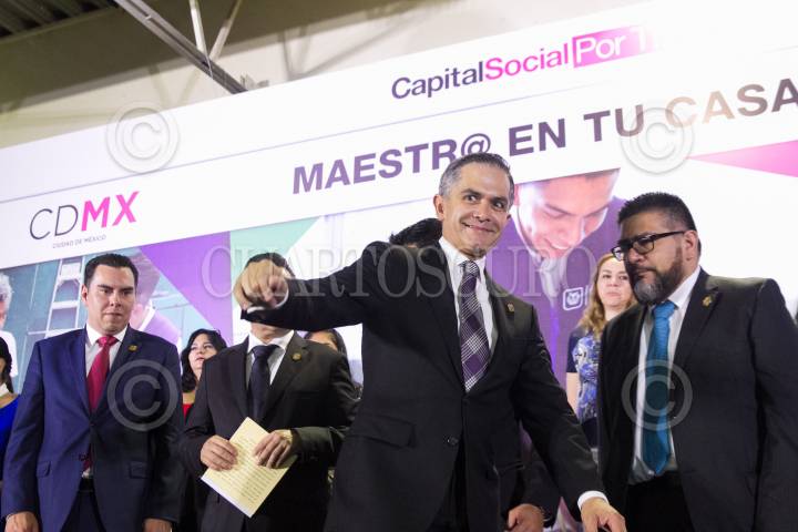 CIUDAD DE MÉXICO, 17MAYO2017.- Miguel Ángel Mancera, Jefe de Gobierno, y Mauricio Rodríguez Alonso, secretario de Educación de la Ciudad de México, durante el lanzamiento del programa "Maestr@ en tu casa". el cual busca ayudar a personas acabar sus estudios básicos a través de visitas domiciliarias. FOTO: MOISÉS PABLO /CUARTOSCURO.COM