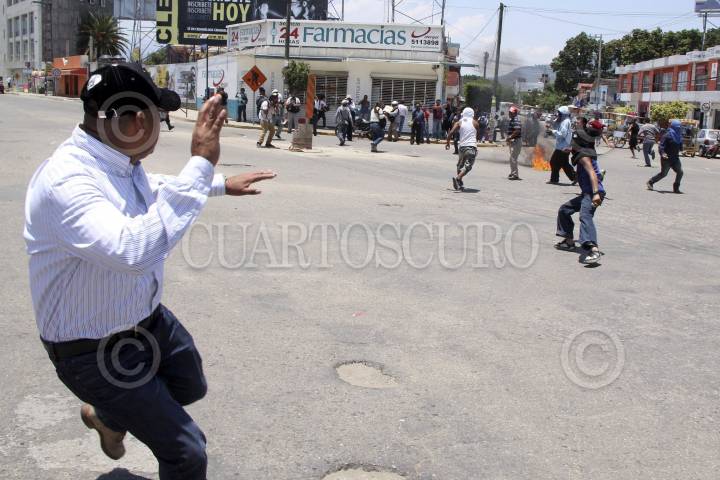 OAXACA, OAXACA, 30MAYO2012.- Elementos de la Policía Estatal desalojaron a los integrantes de la Confederación Obrera Nacional de la Construcción (CONCRETO) Siglo XXI, quienes bloquearon el crucero de Cinco Señores en la ciudad de Oaxaca. El operativo estuvo bajo el mando del comisionado de la Policía Estatal, César Cruz Alfaro, quien se encuentra suspendido del cargo desde el mes de febrero. FOTO: ARTURO PÉREZ ALFONSO /CUARTOSCURO.COM