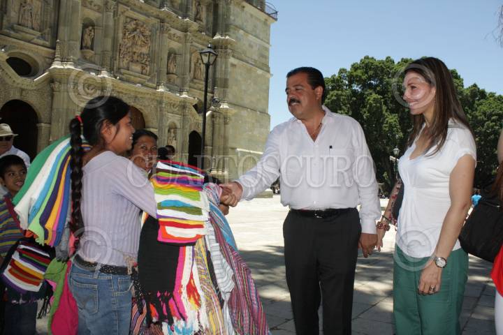 OAXACA, OAXACA, 04JULIO2010.- Eviel Perez Magaña, candidato a Gobernador del Estado por el Partido Revolucionario Institucional (PRI), dIO un paseo en compañia de su familia por el Zócalo de la Ciudad. FOTO: ADRIANA ALVAREZ/CUARTOSCURO.COM