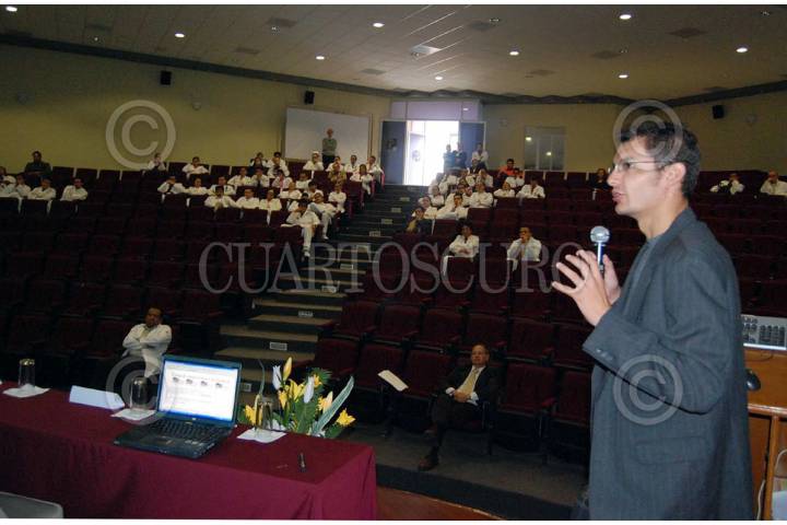 ZACATECAS, ZACATECAS, 04JULIO2008.- Sergio Mayorga Magallones, director de cursos y talleres de la fototeca del estado, impartio la conferencia 'La fotografia de prensa contemporanea', en el Hospital Regional de Zacatecas dentro del programa de cultura general que se imparte a medicos y personal de dicha instituciòn. FOTO: CARLOS SEGURA/CUARTOSCURO.COM