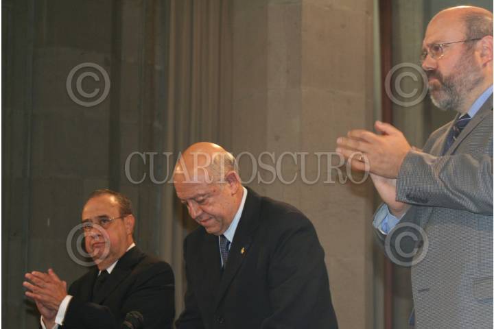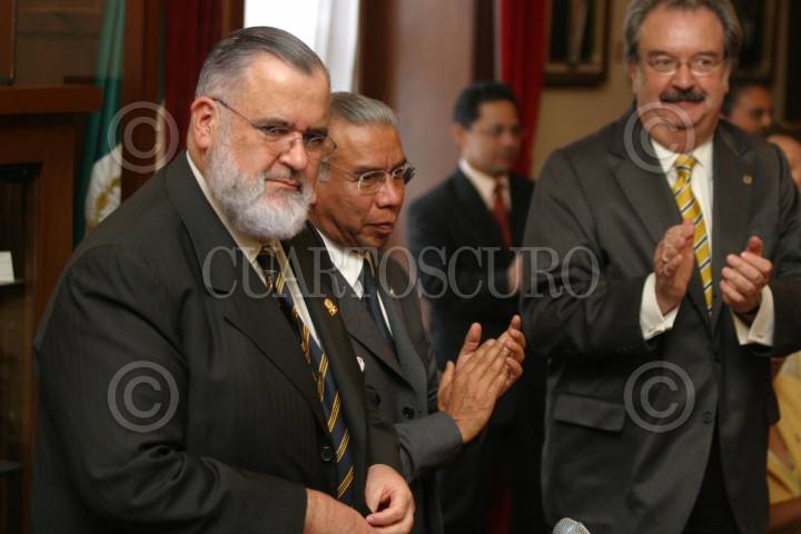 MEXICO, D.F. 25MAYO2005.- Miguel Sadot Sánchez, presidente de la comisión de Derechos Humanos del Senado, José Luis Soberanes, presidente de la CNDH y el director de la Facultad de Derecho de la UNAM, Fernando Serrano Magallón, firmaron un acuerdo para realizar el 2ndo diplomado en Derechos Humanos. FOTO: Sandra Perdomo/CUARTOSCURO.COM