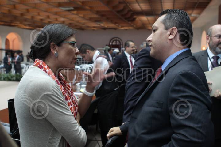MÉXICO D.F., 03AGOSTO2010.- Ana Laura Magaloni, investigadora y José Francisco Blake Mora, Secretario de Gobernación, al finalizar el segundo día de actividades del "Diálogo por la seguridad hacia una política de estado" con la participación de columnistas y analistas políticos, esto en Casino Militar. FOTO: MOISÉS PABLO/CUARTOSCURO.COM