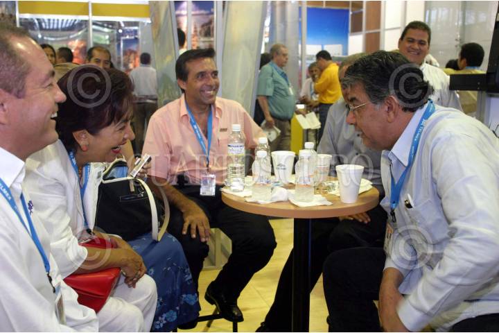 Acapulco, Guerrero, 21ABRIl2004.- José Murat, gobernador de Oaxaca, platica con Guadalupe Gómez Maganda, secretaria de turismo de Guerrero, durante la visita de Murat al Tianguis Turístico 2004. FOTO: Moisés Pablo/CUARTOSCURO.COM