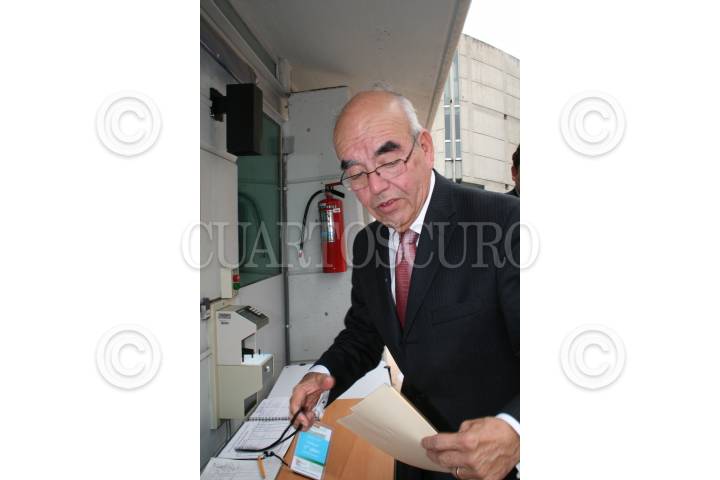 MÈXICO, D.F. 1AGOSTO2006.- Rafael Ortiz Ruiz, subsecretario de elecciones del PRI acudiò al TRIFE, donde fuè recibido por los magistrados ante una peticiòn de una audiencia de oidas. El funcionario registràndose para entrar. FOTO: Paola Hidalgo/CUARTOSCURO.COM