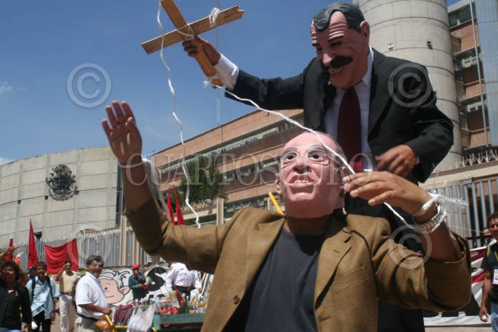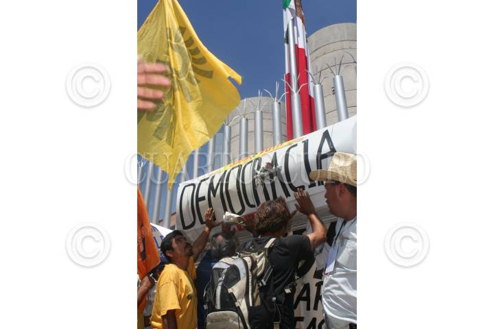 MÈXICO, D.F. 28AGOSTO2006.- Un contingente de simpatizantes del PRD marchò hacia el TRIFE para inconformarse por la ratificaciòn de los resultados electorales. Representaciones del Felipe Calderòn y Vicente Fox se realizaron a las afueras del tribunal. FOTO: Paola Hidalgo/CUARTOSCURO.COM