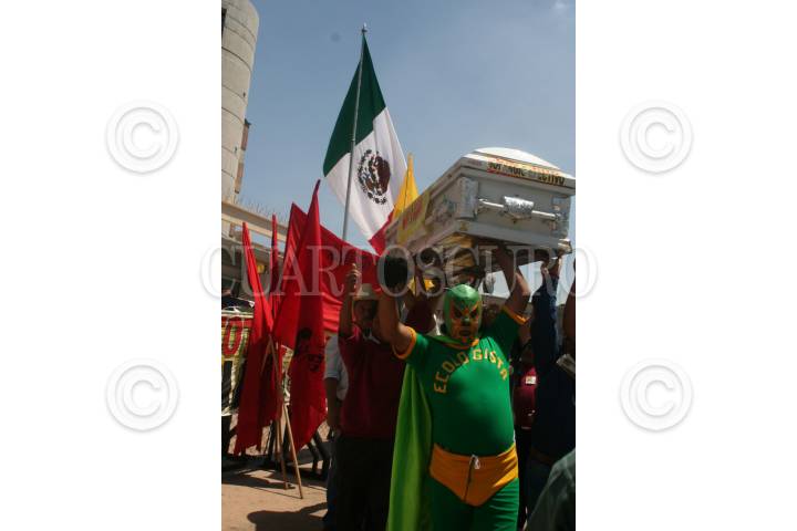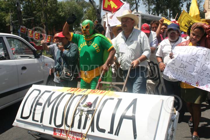 MÈXICO, D.F. 28AGOSTO2006.- Un contingente de simpatizantes del PRD marchò hacia el TRIFE para inconformarse por la ratificaciòn de los resultados electorales. Un fèretro que simbolizaba la muerte de la democracia fuè transladado hasta las puertas del trubunal. FOTO: Paola Hidalgo/CUARTOSCURO.COM