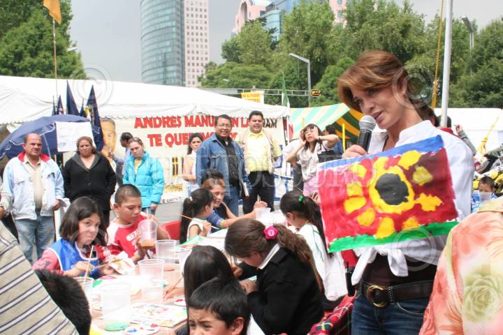 MEXICO, D.F. 7AGOSTO2006.- Magriana Pratz organizo un taller de pintura para los ninos que habitan los campamenntos de Paseo de la Reforma. FOTO. Paola Hidalgo/CUARTOSCURO.COM