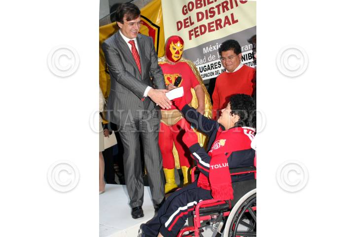 MÉXICO, D.F. 06ENERO2006.- Marcelo Ebrard, jefe de gobierno capitalino y Jorge Garralda dieron el banderazo de salida a las carabana que transportará los juguetes para niños de diferentes casas hogar y hospitales. Magriana Pratz estuvo presente FOTO: PAOLA HIDALGO/CUARTOSCURO.COM