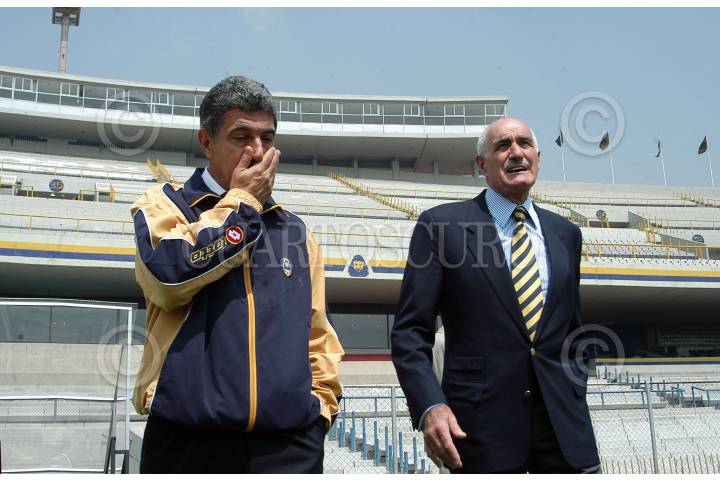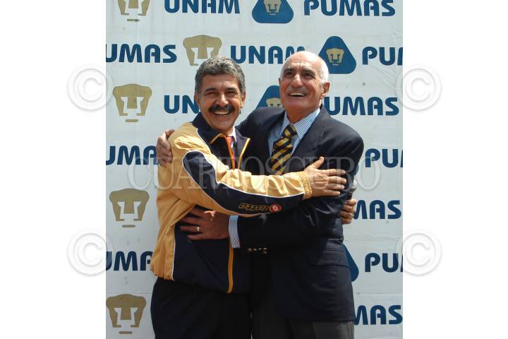 MEXICO D.F. 23MAYO2006.- En la cancha del estadio olimpico México 68, fue presentado Ricardo ¨Tuca ¨ Ferreti como el nuevo director tecnico de los Pumas de la UNAM, lo acompaña el presidente del patronato de Pumas, Víctor Mahbub. FOTO: Germán Romero/CUARTOSCURO.COM