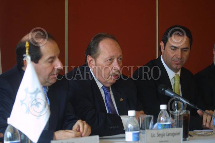 MÉXICO,D,F.,23 NOVIEMBRE2007.- Eduardo Sojo secretario de economia, Javier Lozano secretario del trabajo, durante la celebración del 90 aniversario de la confederación de camaras nacionales de comercio, servicio y turismo. FOTO: SASHENKA GUTIERREZ/CUARTOSCURO.COM